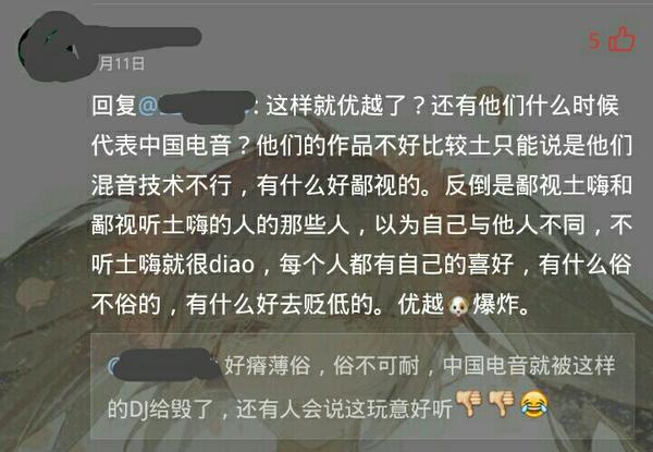 听电音的人就听自己喜欢的就行,喜欢就听,不喜欢就换歌,你不喜欢总有人喜欢,结果你去鄙视那个人,优越狗的心态也是呵呵了。