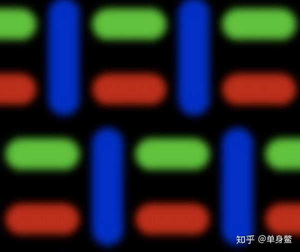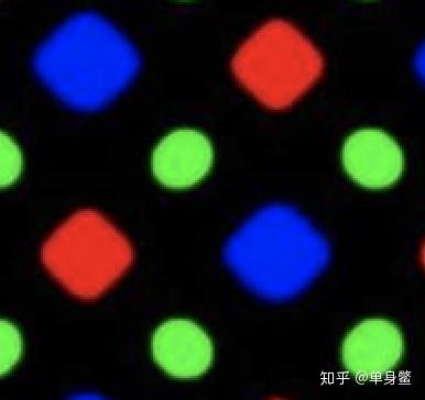 前面提到的Delta排列,RGB三个颜色都是正常排列的2/3大小,这种分配注定会和其他两种有比较大的差异。